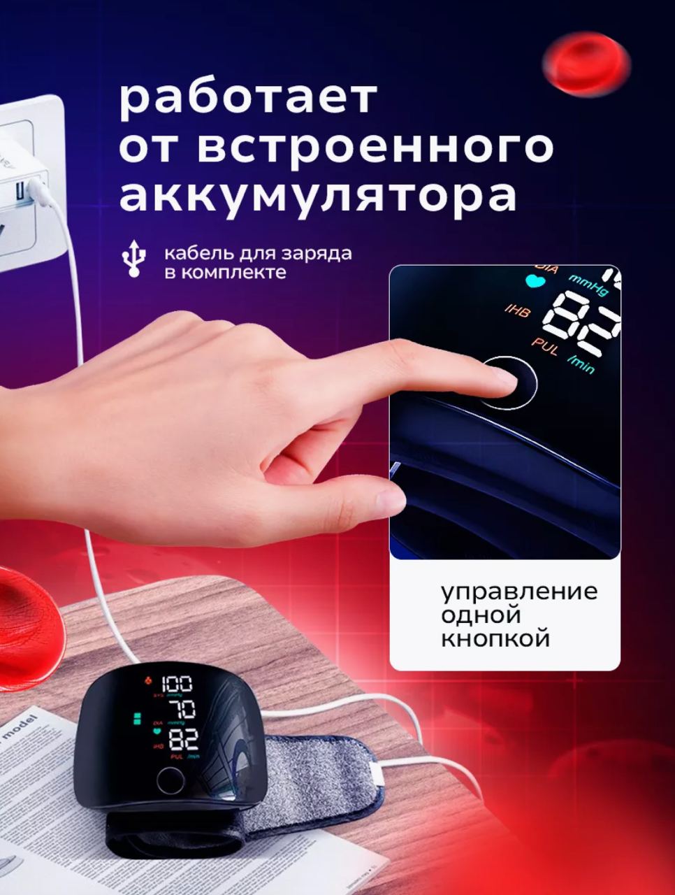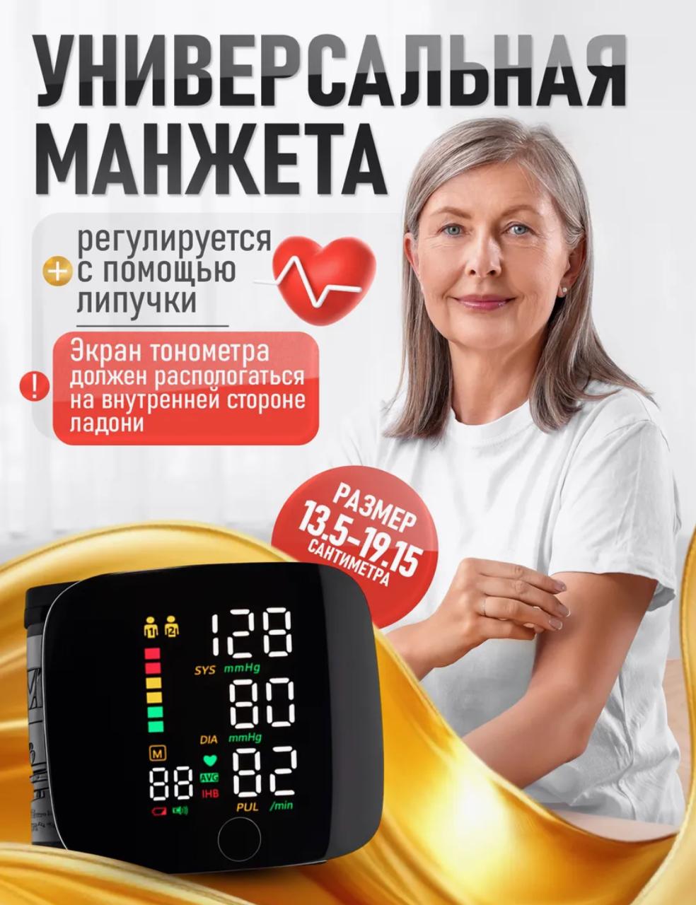 Компактный тонометр на запястье – инновационное медицинское устройство, созданное для того, чтобы сделать измерение артериального давления простым и удобным. С возможностью зарядки от USB кабеля, высокой точностью измерений и простотой в использовании, такой портативный электронный аппарат станет идеальным выбором для тех, кто желает измерять давление и поддерживать контроль над своим здоровьем где угодно и в любое время. Индикаторы гипертонии и аритмии обеспечивают моментальное определение повышенных показателей и рисков возможных заболеваний.